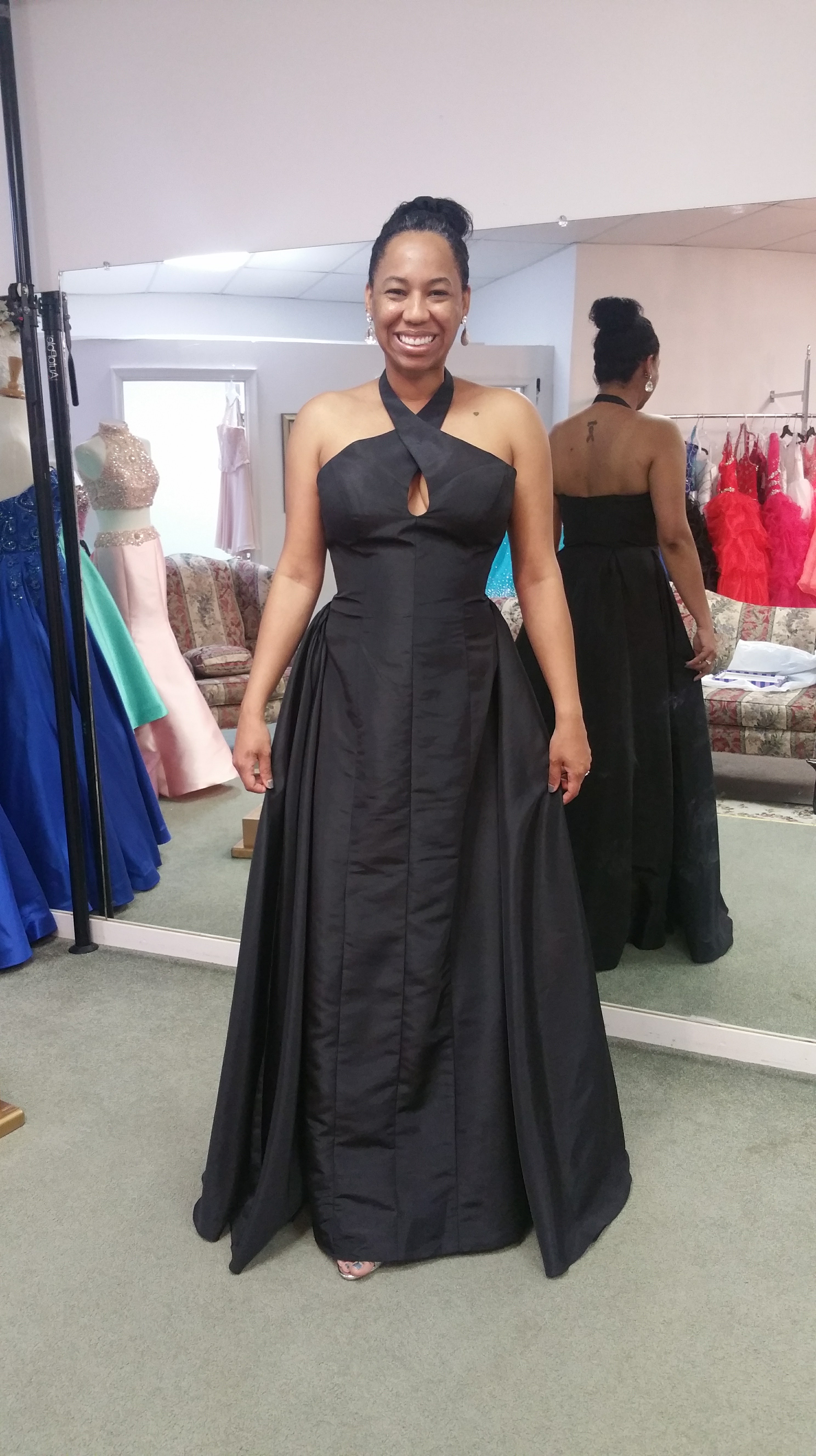 Trying night gown at Anna Joy’s Bridal Boutique