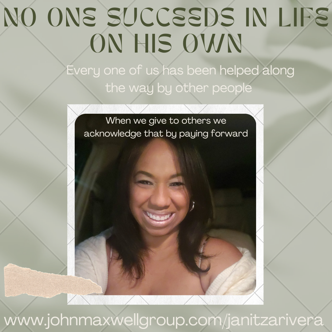 Nadie tiene éxito en la vida por su cuenta. todos han sido ayudados en el camino por otras personas. Cuando damos a los demás, lo reconocemos al devolverlo a otros.